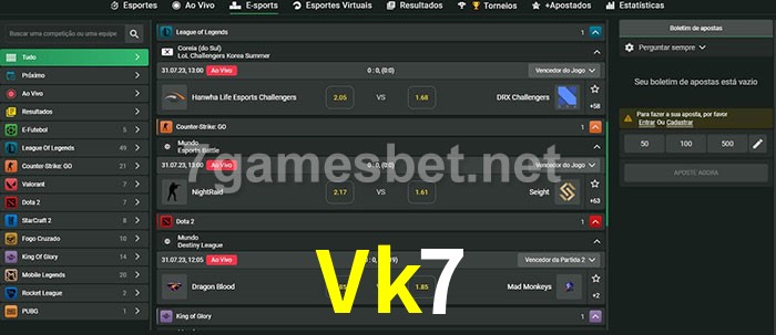 A aposta Vk7 oferece aos jogadores a experiência mais conveniente de apostas em eSports!